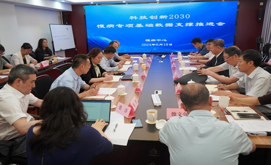 为明确重大慢病流行本底情况,支撑“四大慢病重大专项”的战略部署,中国疾控中心慢病中心于2024年6月19日下午组织召开了四大慢病重大专项基础数据支撑工作推进会。国家卫生健康委四大慢病重大专项技术总师陈竺院士,国家卫生健康委科教司顾金辉副司长、规划信息司于世利一级巡视员、医疗应急司公共卫生医疗管理处黄欣处长、统计信息中心吴士勇主任,中国疾控中心施小明副主任、科技处李振军处长,国家心血管病中心郑哲书记,国家癌症中心肿瘤登记办公室魏文强主任,国家呼吸医学中心高海鹏常务副主任,国家基层糖尿病防治管理办公室蔡淳常务副主任等慢病相关司局和国家专病中心领导和专家,以及中国疾控中心慢病中心吴静主任、周脉耕副主任、王丽敏副主任等领导出席了本次会议。会议由吴静主任主持召开。