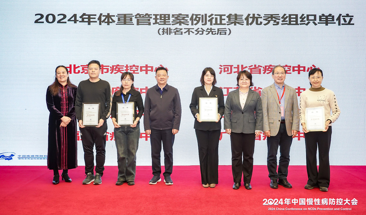 2024年10月20日,在全国慢性病防控大会—体重管理新技术与新模式论坛上,2024年全国体重管理优秀案例评选结果正式发布。中国疾控中心严俊副主任、中华预防医学会李光琳副秘书长、中国疾控中心慢病中心吴静主任和北京协和医学院群医学及公共卫生学院邵瑞太教授为优秀省级组织单位颁发荣誉证书。