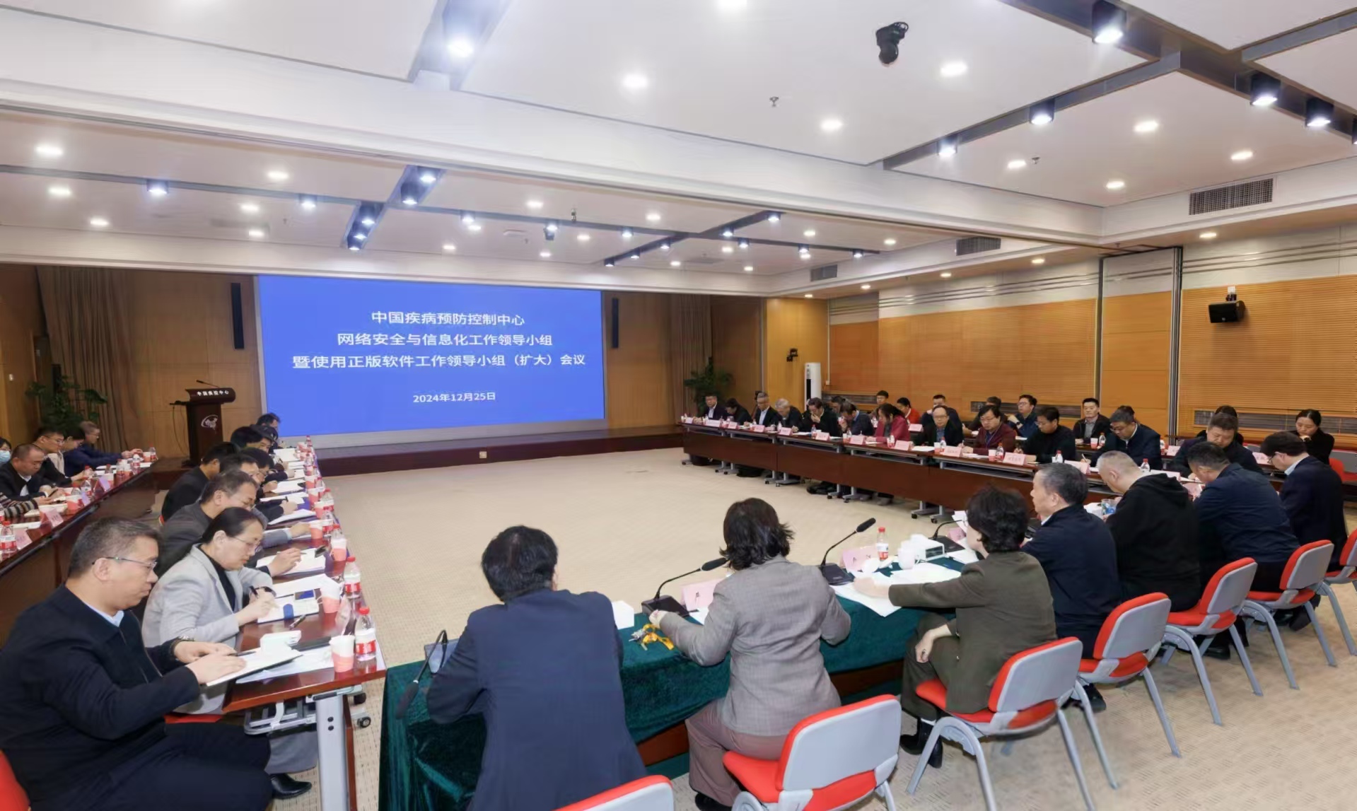 为进一步强化中心网络安全与信息化建设,规范正版软件使用管理,推动各项工作高效开展。2024年12月25日上午,中国疾控中心在北区主楼一层多功能厅召开网络安全与信息化工作领导小组暨使用正版软件工作领导小组(扩大)会议。会议由严俊副主任主持,中心主任沈洪兵、党委书记卢江出席会议并讲话。