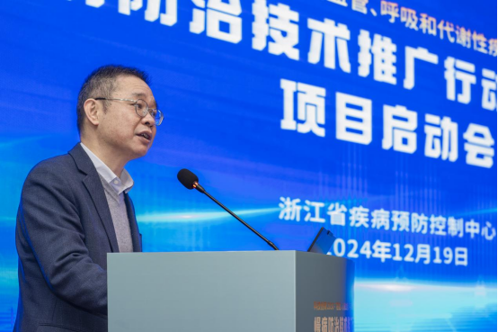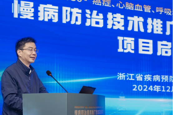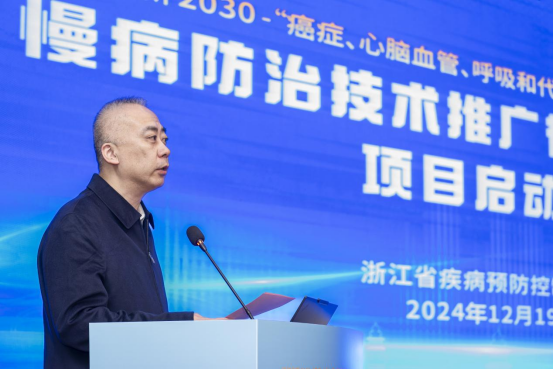 科技创新2030-“癌症、心脑血管、呼吸和代谢性疾病防治研究”重大专项(以下简称四大慢病重大专项)是为落实《“健康中国2030”规划纲要》《“十四五”国民健康规划》,强化科技创新对卫生健康的支撑作用,全面体现卫生健康领域国家战略科技力量优势作用的专项工程。由浙江省疾病预防控制中心作为牵头单位,特聘慢病防控专家- 慢病中心主任吴静作为项目负责人的四大慢病重大专项“慢病防治技术推广行动实施研究”项目启动会于2024年12月19日在杭州隆重召开,会议由浙江省疾病预防控制中心党委书记王桢主持。
