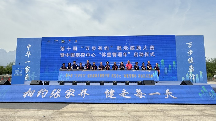 4月17日,由国家卫生健康委医疗应急司、 (中国预防医学科学院)指导,中国疾控中心慢病中心主办的第十届“万步有约”健走激励大赛在张家界市民广场启动。第十届大赛以“万步有约,健康体重”为主题,总参赛规模将超过100万人。全国妇联书记处书记、党组成员宋莉,国家卫生健康委医疗应急司副司长唐东昕、中国疾病预防控制中心(中国预防医学科学院)主任(院长)王健伟等领导出席启动仪式。来自全国的卫生部门、各界代表、健走爱好者近1000人参加启动仪式。