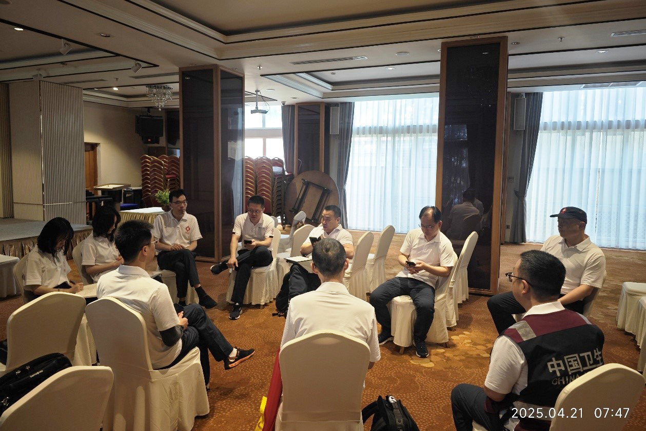4月21日早7点,中心援缅先遣队员在曼德勒召开工作会议,传达中心启动援缅卫生防疫二级响应的工作要求